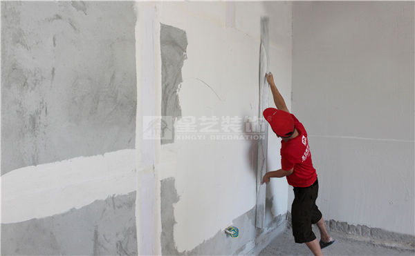3、墻面找平:用2m刮尺先將二條沖筋條中間刮平,待中間干后再刮上下部分。