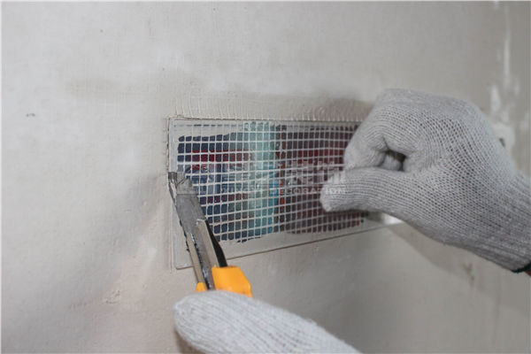 批刮好后對電底盒上的玻纖網進行清理,及底盒清邊。